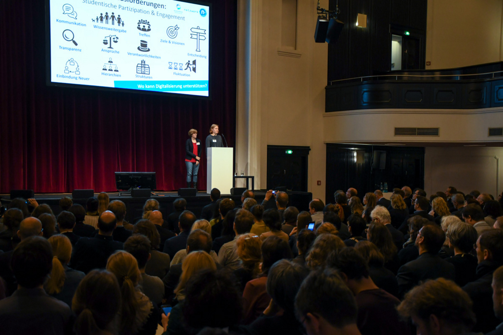 In Keynotes, Fachvorträgen, Workshops und Diskussionen haben wir mit unseren Teilnehmer*innen über die Potenziale, aber auch Spannungsfelder von Digitalisierung und Nachhaltigkeit sowie deren Zusammenspiel gesprochen. Themenschwerpunkte der parallelen Tracks waren unter anderem Robotics und Künstliche Intelligenz, forschungsnahe Curriculumentwicklung, Nationale Forschungsdateninfrastruktur (NFDI), Social Video Learning, Data Literacy Education, Campus Management, forschungsorientierte Lehre sowie allgemein Nachhaltigkeit in der Lehre, Verwaltung und Forschung.